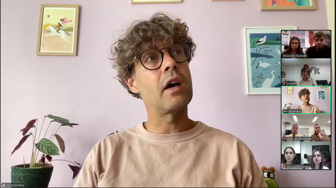 Avec Davy Bauret, chef opérateur en présence des GP 2 (Gestion de Production) Alexandre Paumelle, Clémentine Derlon, Anaïs Portolano, Mylène Grunewald, Justine Domange, Lauryne Canu-Zins et Mme Zoia.