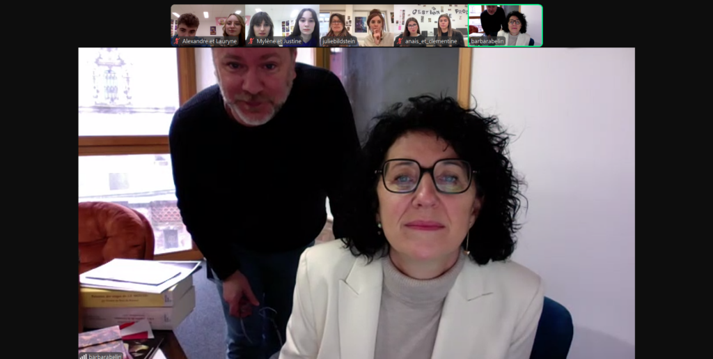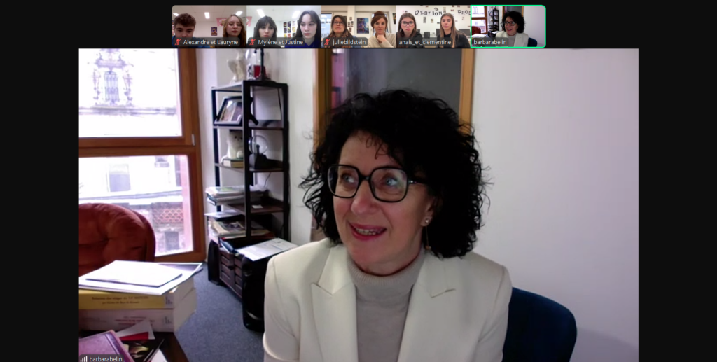 Des visios et des rencontres avec des professionnels de l’audiovisuel Barbara ZABORNY, gérante d’INFINI Production et Fabrice CHABOISSIER, réalisateur. Avec les GP1 : Alexandre Paumelle, Lauryne Canu-Zins, Mylène Grunewald, Justine Demange, Clémentine Derlon, Anaïs Portolano, Mmes Bildstein et Zola. Précédent Journal en anglais, N° 4 Plus récent Des rencontres avec des professionnels de l’audiovisuel