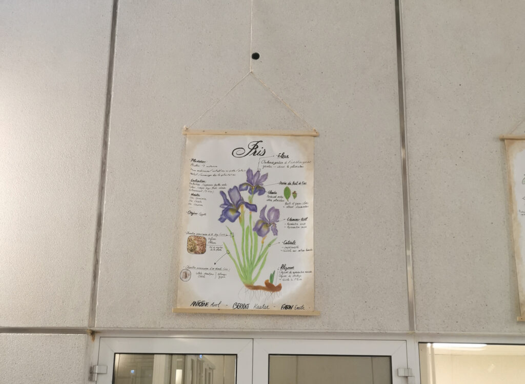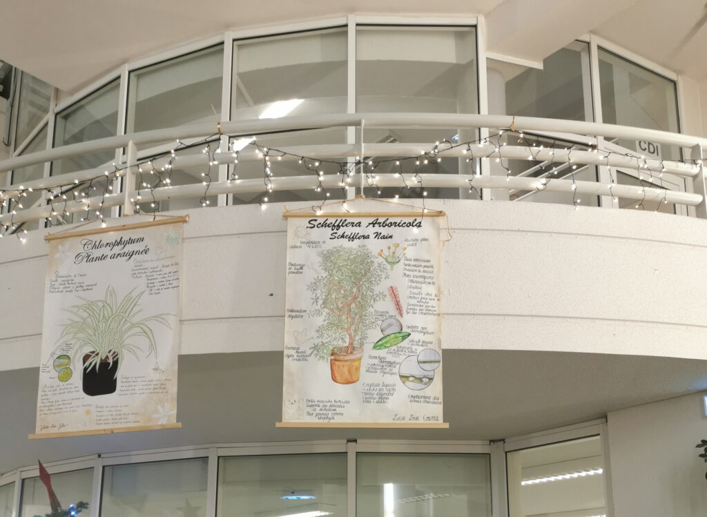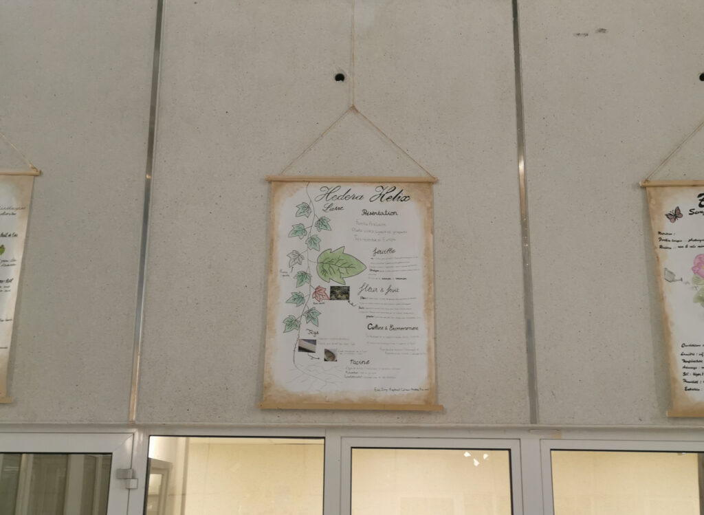 Les élèves de la spécialité Sciences de la Vie et de la Terre expérimentent la création d’affiches format Grand Aigle avec la nature comme support (papier), médium (brou de noix) et outils (calames en bambou). Afin d’être dans de bonnes conditions de création, ils sont venus travailler dans la salle d’arts plastiques, avec les élèves d’arts plastiques présents.